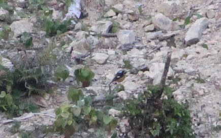 Hard to get photos. It spent much of the time on the ground always on the move. Back is black, white wing bars, black throat, white streaks on back of head and rufous breast and belly. There was no rufous on the tail. It was not calling.
