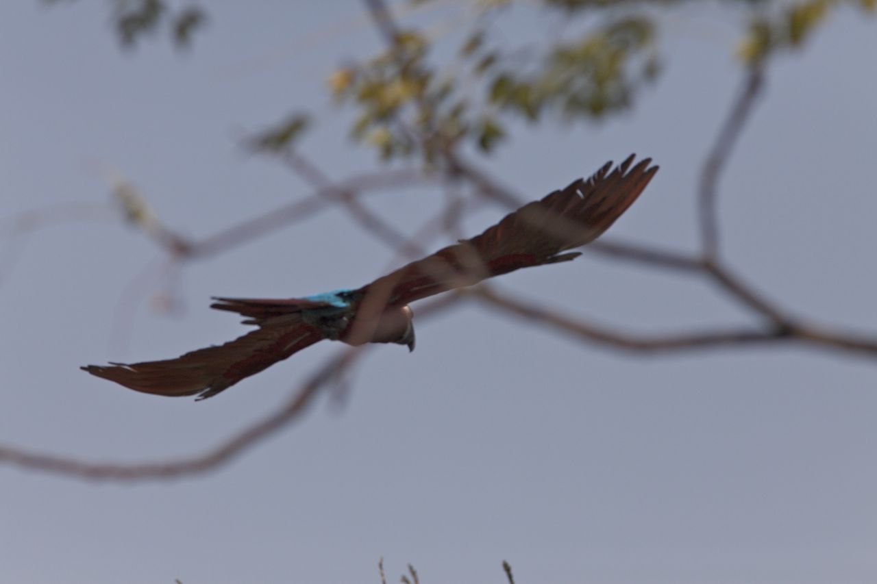 好似一隻彩色的猛禽啊!(雖然不是,但氣勢上,鉤嘴對鉤嘴,體型大,叫起來可以很大聲,似不好招惹!猜白肩鵰是否首次見到這鳥種... )
