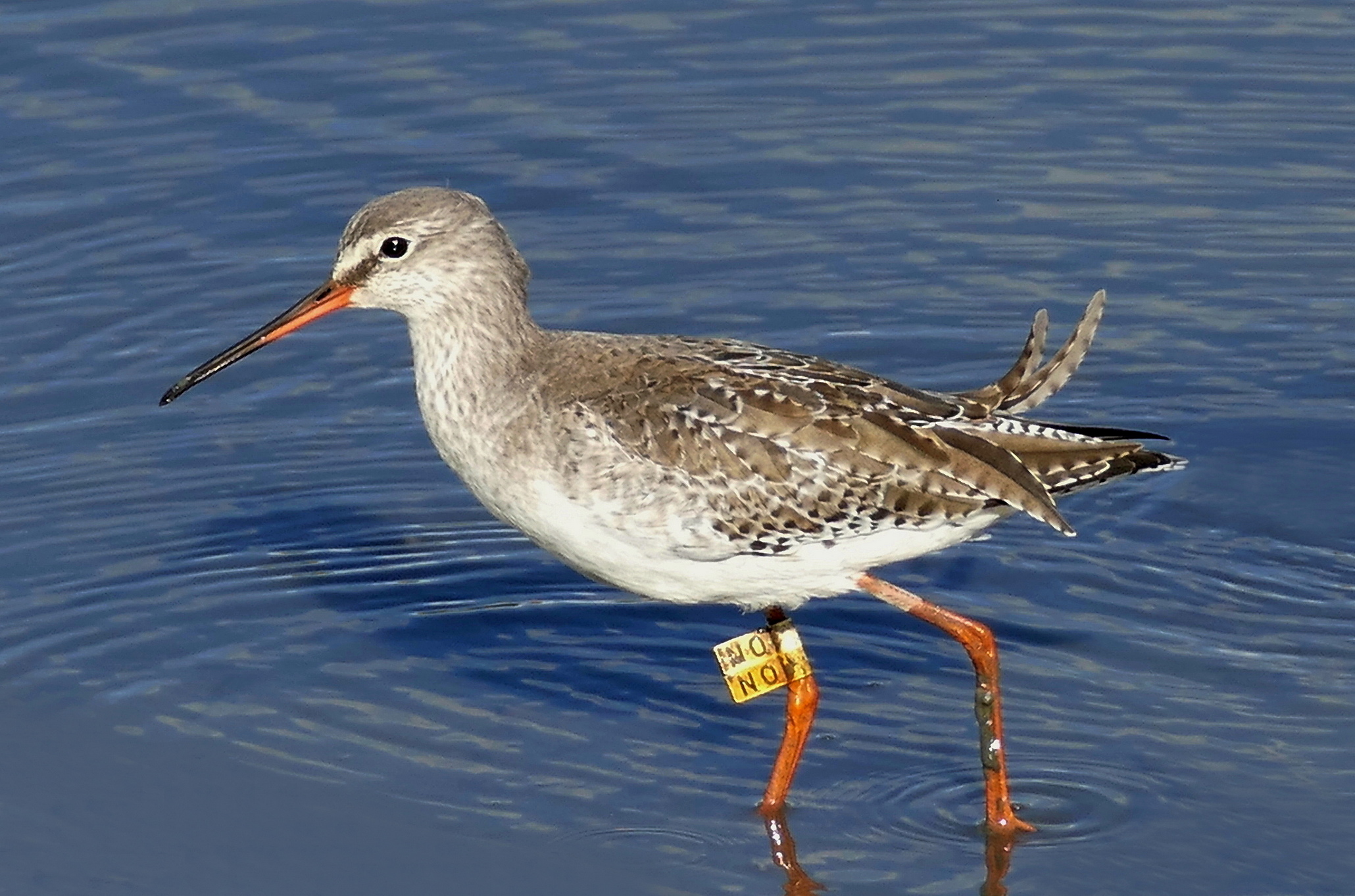 Saw the Redshank (marked NO) again today (2022.12.25) at Nam Sang Wai.