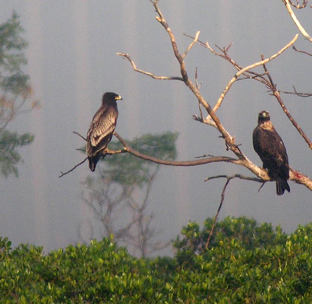 Left is juvenile Greater Spotted Eagle and right is Imperial Eagle, either subadult or adult.
