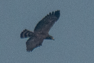 Saw this raptor soaring on the morning of Aug 24th 2019 near the Tung Chung River along with a pair of kites. Kites were smaller than this bird by comparison. At first I thought it might be a crested serpent eagle, but the level wings and number of tail bands seems to suggest it's something else. Any thoughts?