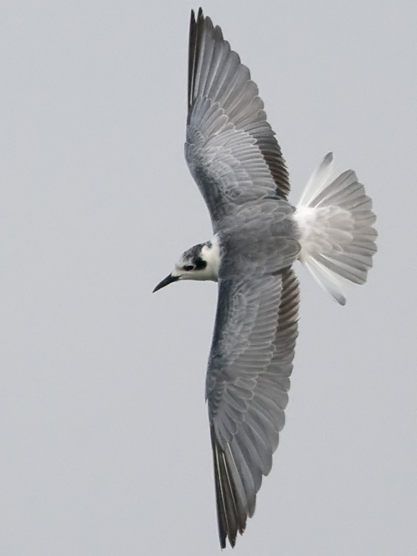 Assuming the photo is of the same bird (and I think it probably is), this clinches the ID as White-winged Tern. Note that it still has some black underwing coverts retained from breeding plumage (Whiskered and Black Terns have white underwings)