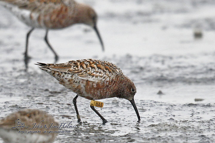 Summer-plumaged Curlew Sandpiper with single yellow flag JLE