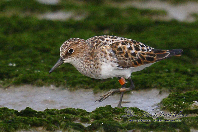 The Orange-flagged Red-necked Stint that John mentioned. Thanks Jemi for spotting out this bird for me.