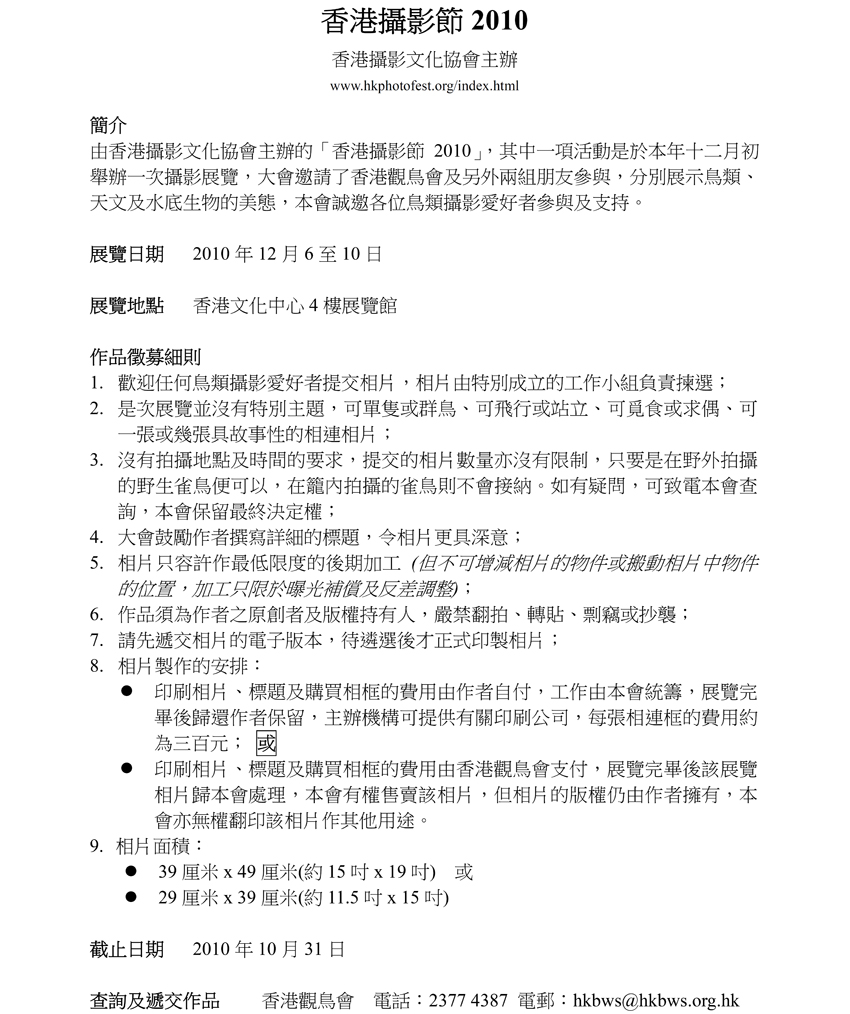 This is a very good chance for public education on birds and bird photography. We decide to participate because we think it can benefit HK society, and also benefit the society.