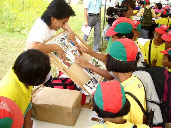 觀鳥節所在地的Rot Fai 公園面積比較大,十幾頂大型帳篷圍出的區域中有很開闊的草坪,很適合聚集人群。大會為週末設計的活動也很有趣,除了繼續為青少年提供遊戲活動外,還有專題的露天討論會、穿插民謠歌手的演唱、小朋友的表演、象徵性的鳥兒放飛儀式等等……既有教育意義又很輕鬆。大會最後的安排是電視現場轉播的高校鳥類辨認比賽。參賽隊伍由6組高校學生組成,三人一組。比賽由鳥類圖片識別、鳥音識別兩個主要環節組成,出示答案前,間中也穿插由觀眾參與的解答活動。現場氣氛非常熱烈,參賽者與觀眾都很投入。播出後的公眾宣傳效果應該非常好。