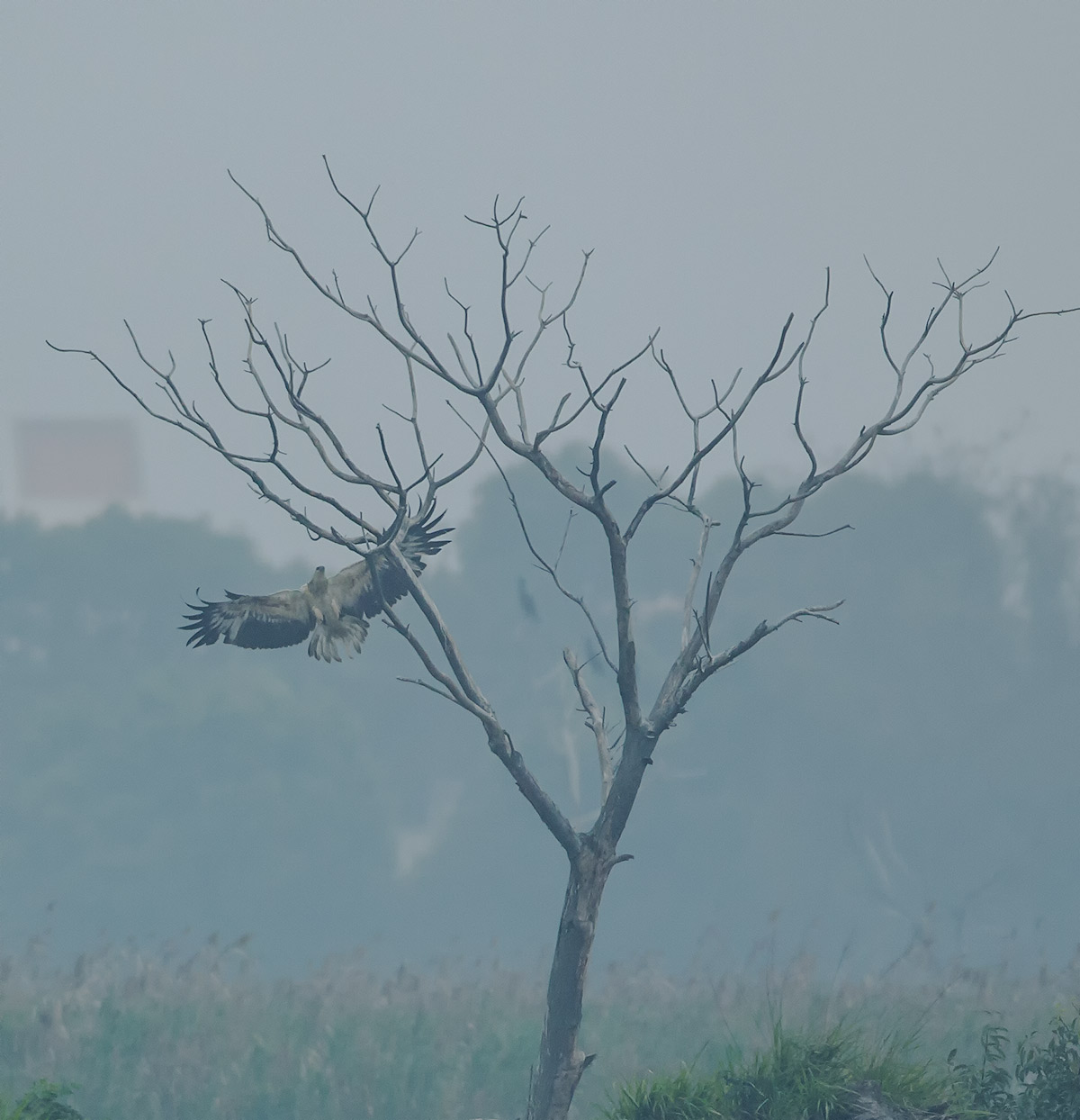 I was waiting for Imperial Eagle Or greater spotted Eagle, weather was cloudy and visibility was very poor, suddenly i saw this bird came from nowhere, and landed on one of the tree: