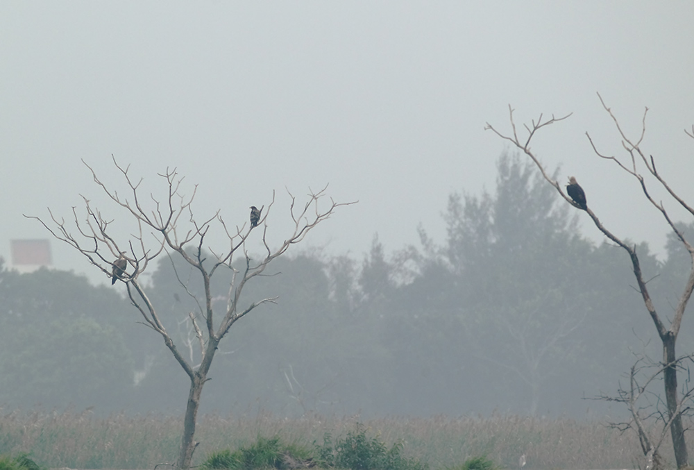 It was still far away for my 600 + 1.4 TC: I kept on watching the bird and by this time started raining and visibility went down further: And i think this should be a record photo all the three raptors together without any dispute among them: