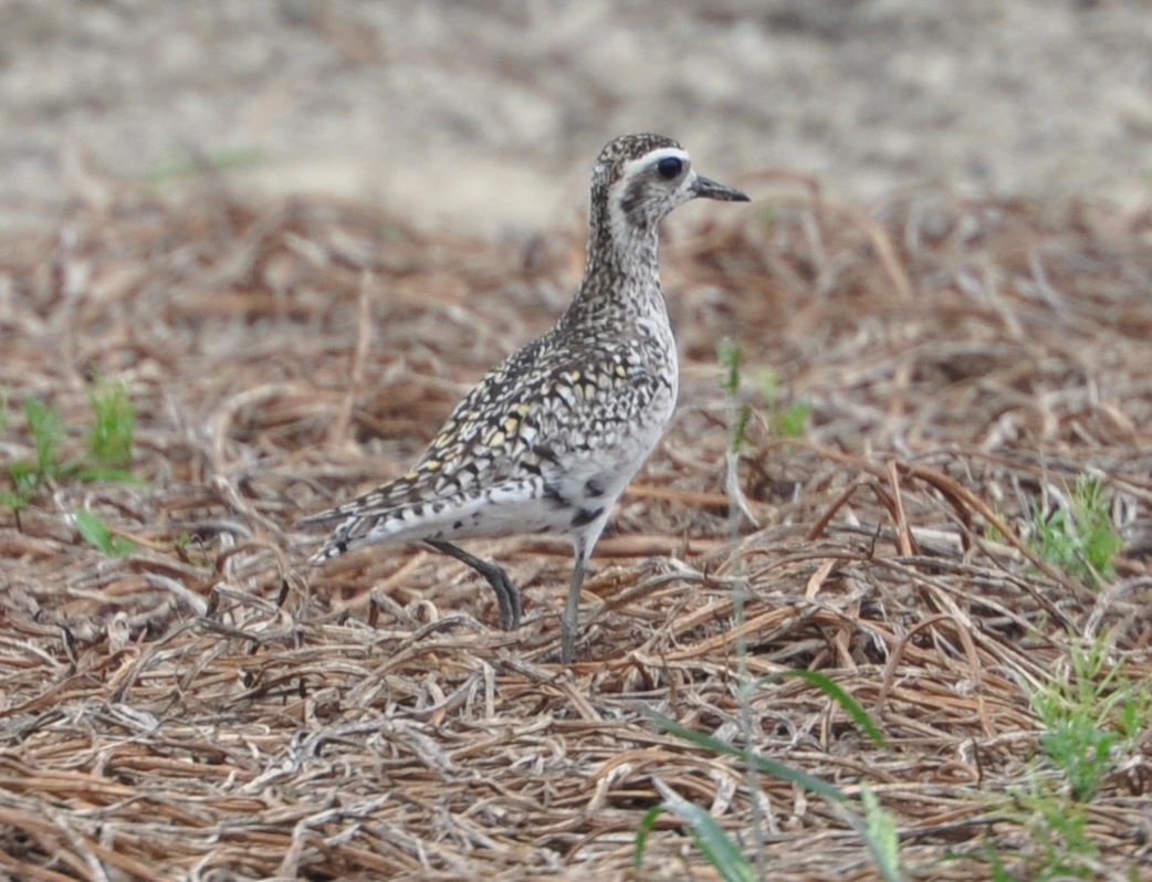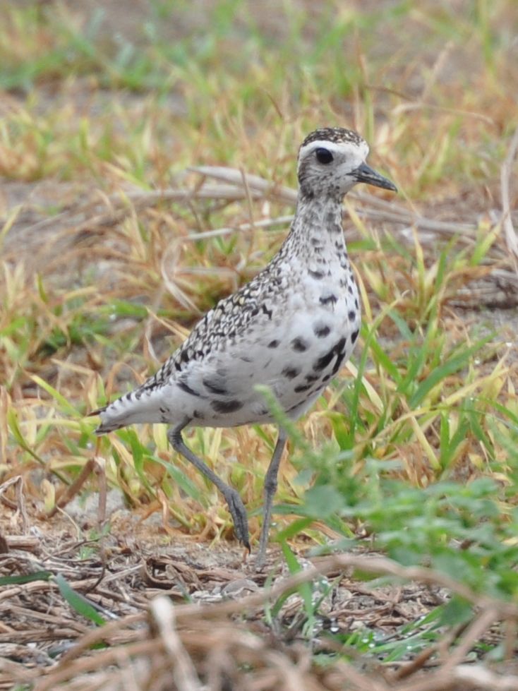 This is a Pacific Golden Plover. Some yellower feathers are visible on the upperparts, ruling out Grey Plover. Also the structure (rather small, slim appearance) and obvious supercilium do not fit Grey Plover. Also, Grey Plover is very rare away from the intertidal areas and is unlikely at Long Valley.