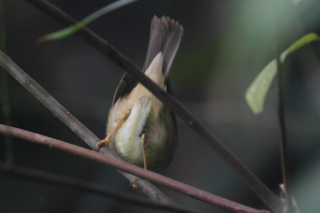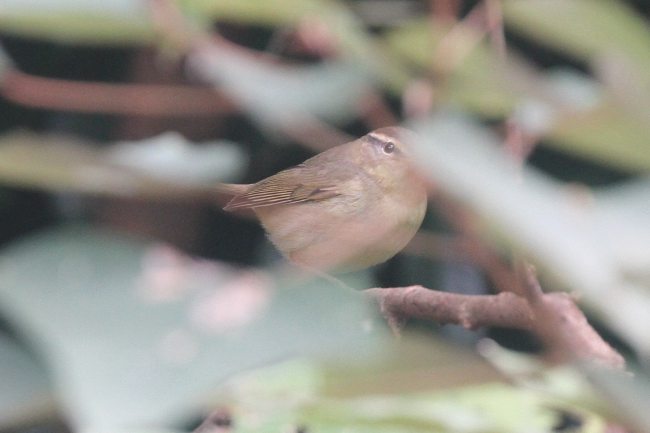 Watched this warbler for 10 minutes closely. No calls heard. Played recording of both Yellow-streaked and Radde's Warbler and got no response.