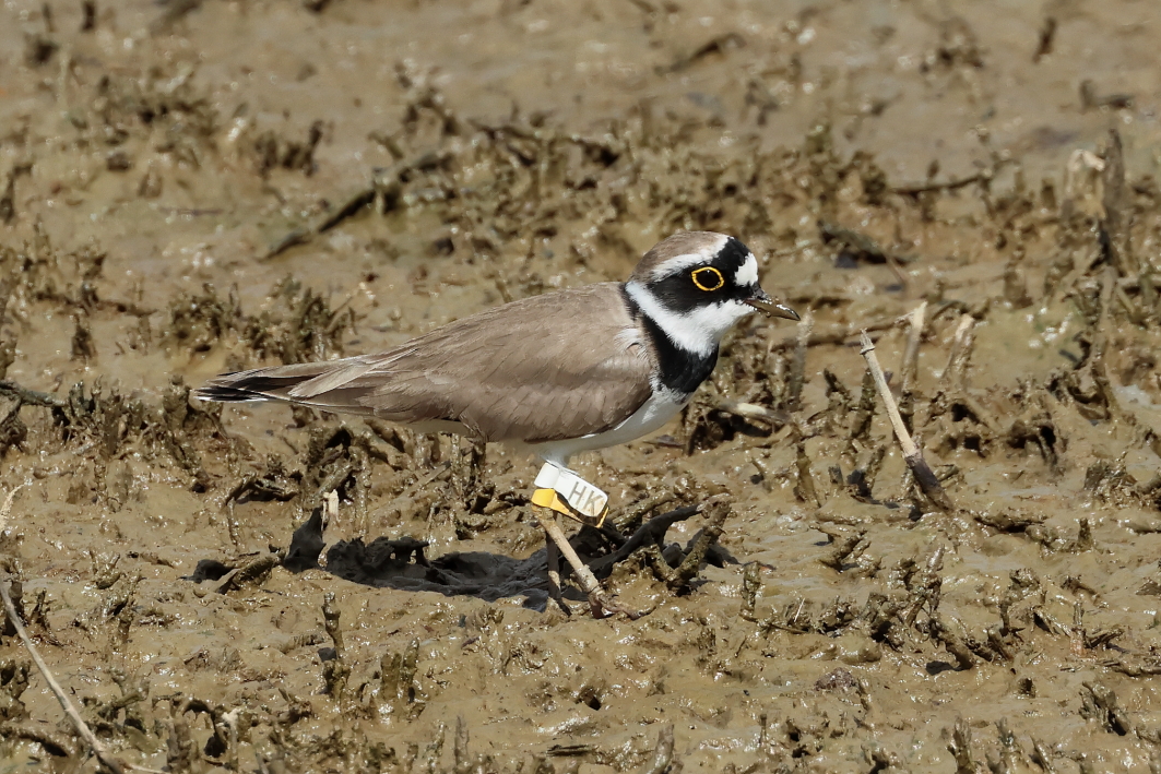 Little Ringed Plover HK was ringed on 5-Jan-2019 as an adult male. Previously reported 3 times: 11-Dec-2019, 28-Oct-2022 and 1-Nov-2022, both at Mai Po #16/17.