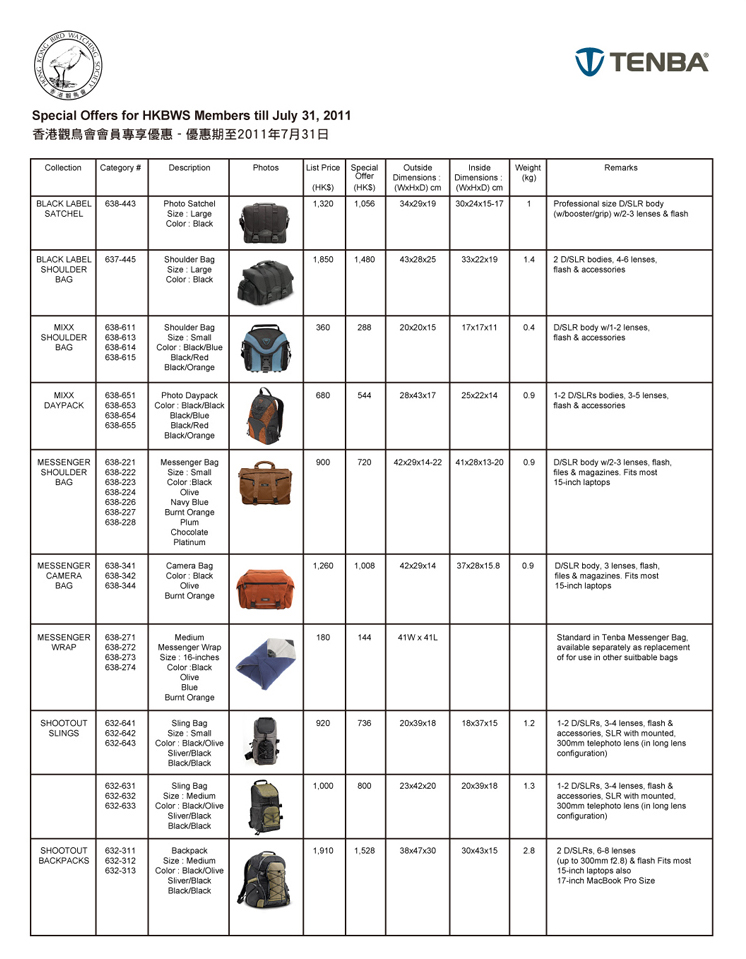 » Tenba & Pentax 會員特價優惠 Special Offer to HKBWS Member