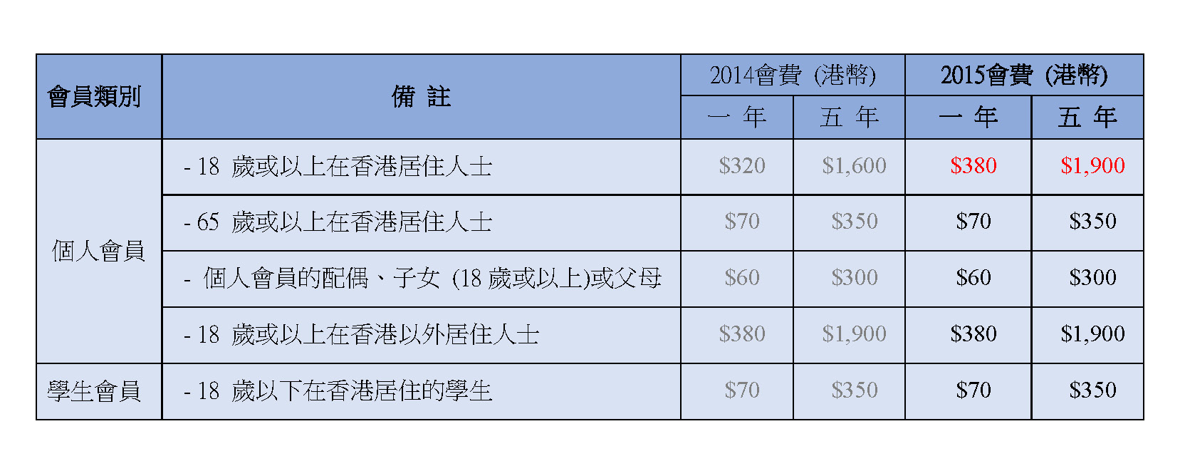 當晚其中一個通過的決議為增加個人會員的年費,詳情如下: