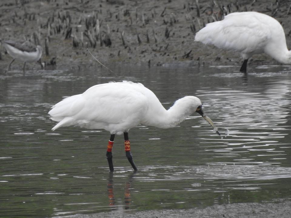 S21 colour-ringed Black-faced Spoonbill that just caught a fish. Really lucky to get this moment.