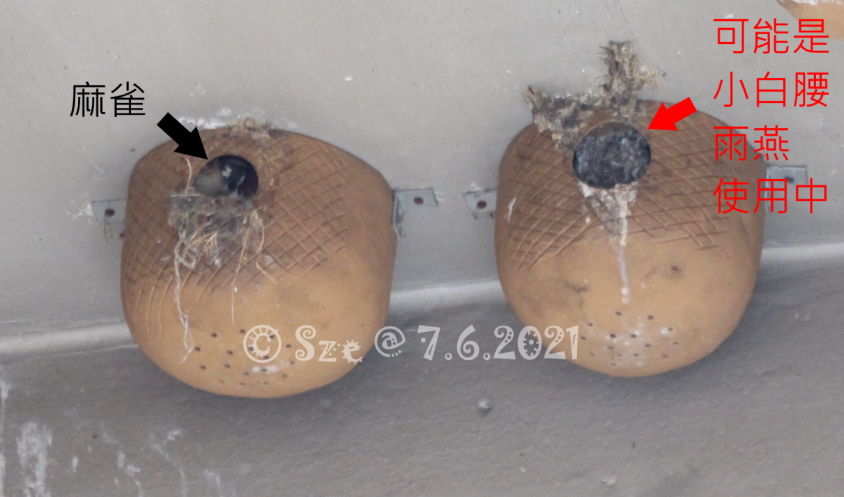 做個記錄,慘劇發生15年後,終於親眼見到有小白腰雨燕在這些人工燕巢內,過往一直只見麻雀用人工巢。