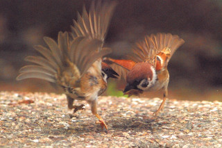 一對樹麻雀翩翩起舞