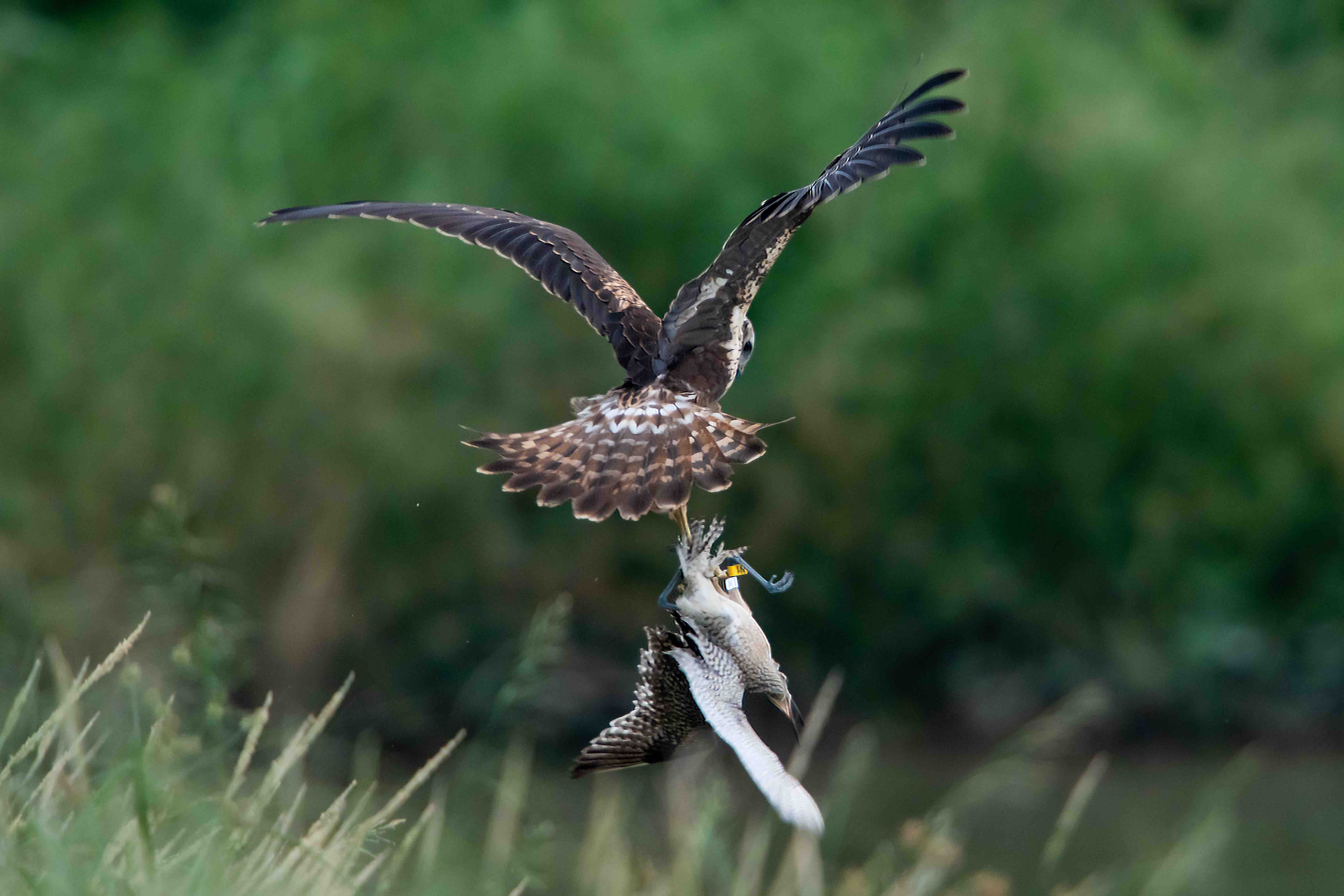 今日在米埔一號屋見到幾隻可能剛在港上了下列腳環的中杓鷸,它們只是在屋傍的堤基上走動,不會飛離! 真中一隻更慘被白腹鷂生擒!