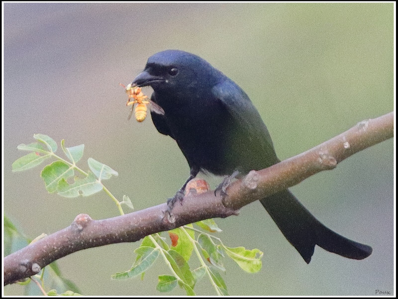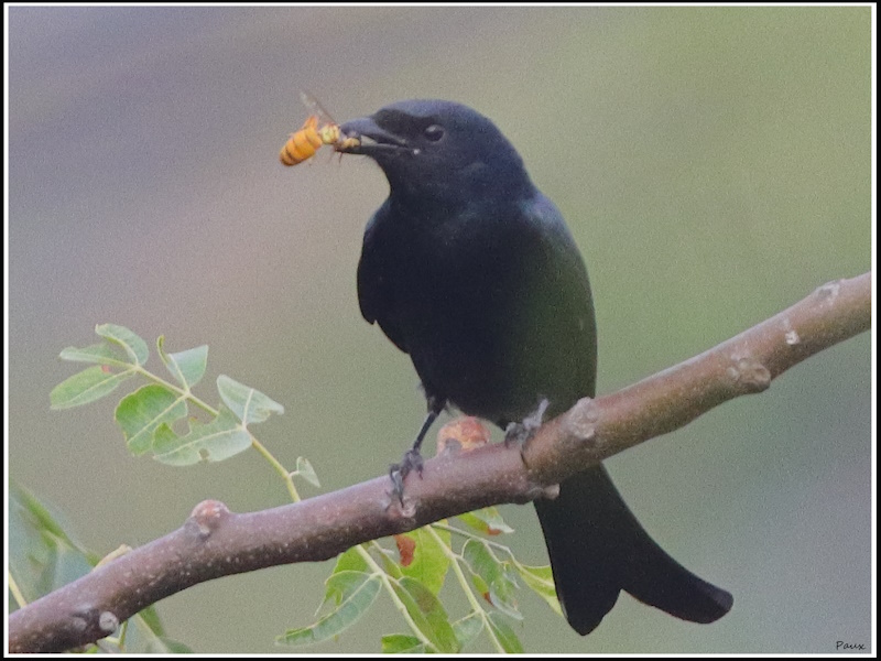 Black Drongo showing its prize
