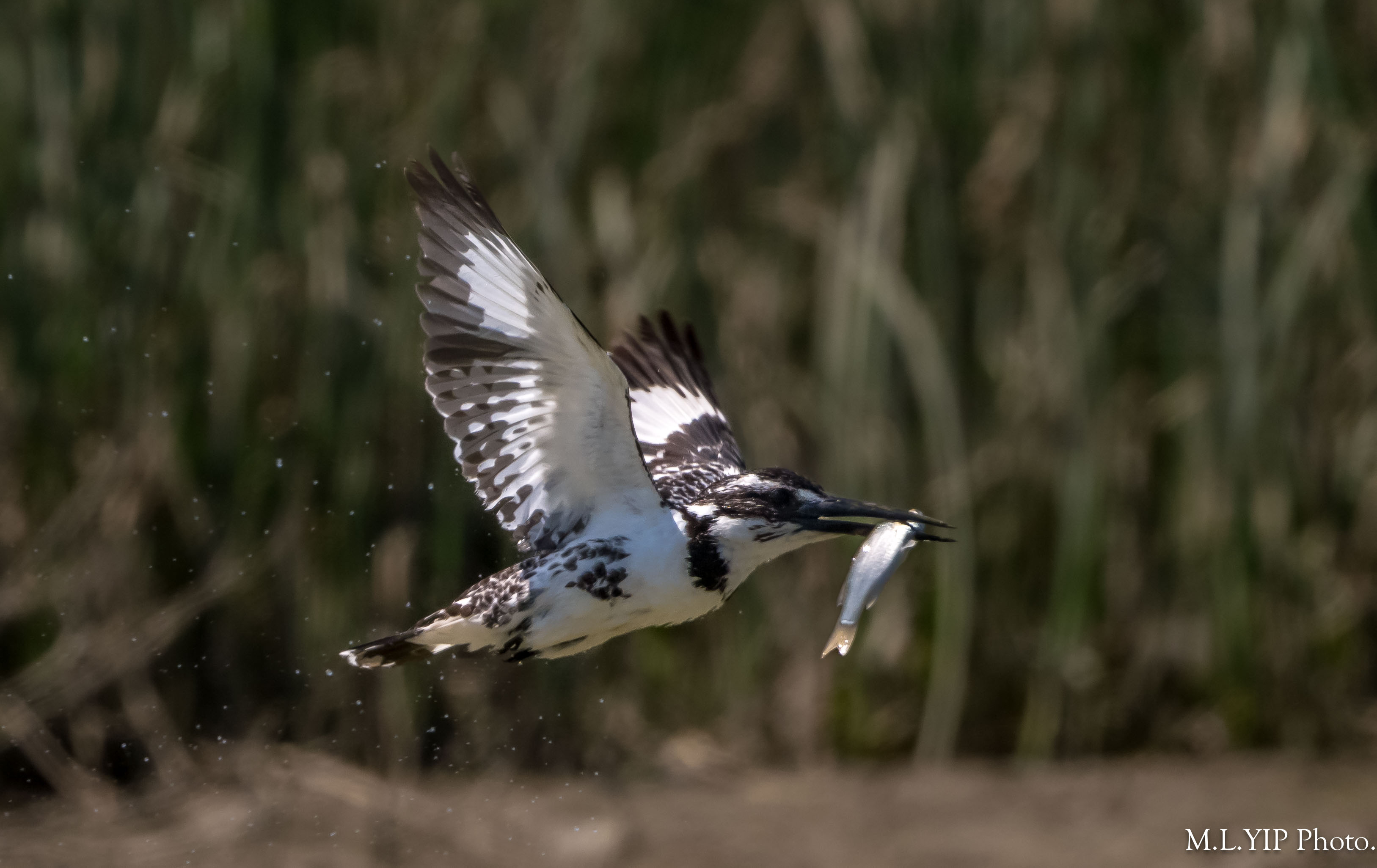 斑魚狗叼魚圖.