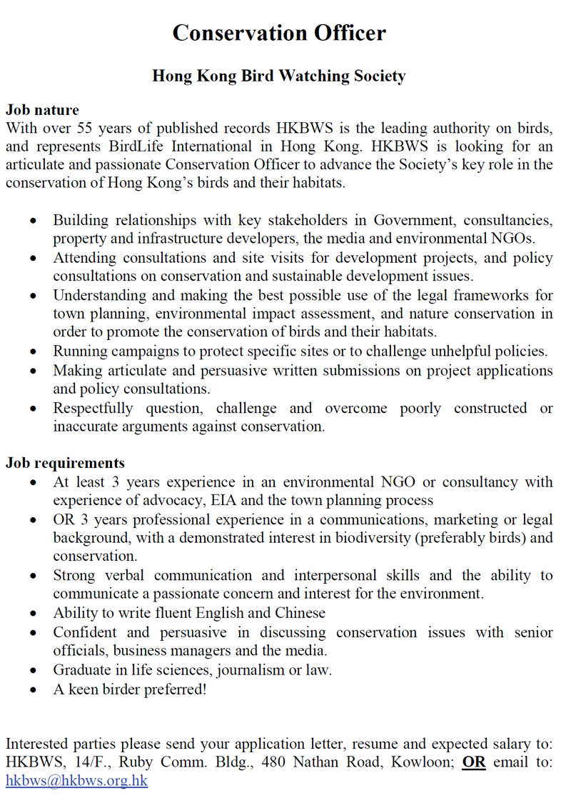 » Recruitment of Conservation Officer