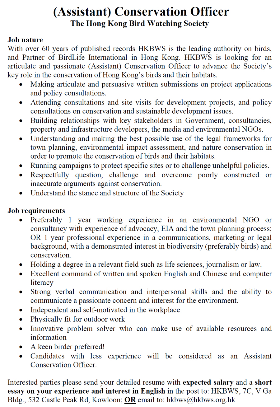 » Recruitment of (Assistant) Conservation Officer