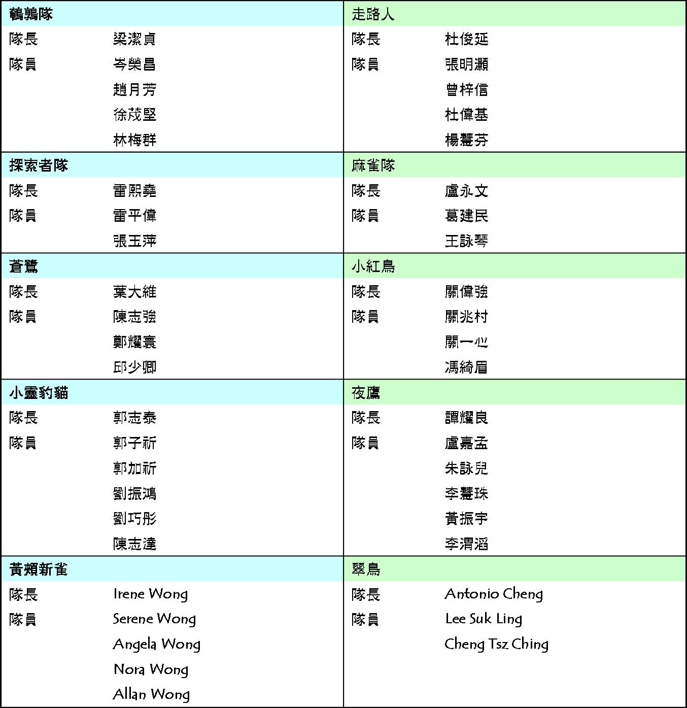 » 香港觀鳥大賽2010參賽名單 HK Bird Race 2010 List of Teams [30/3更新]