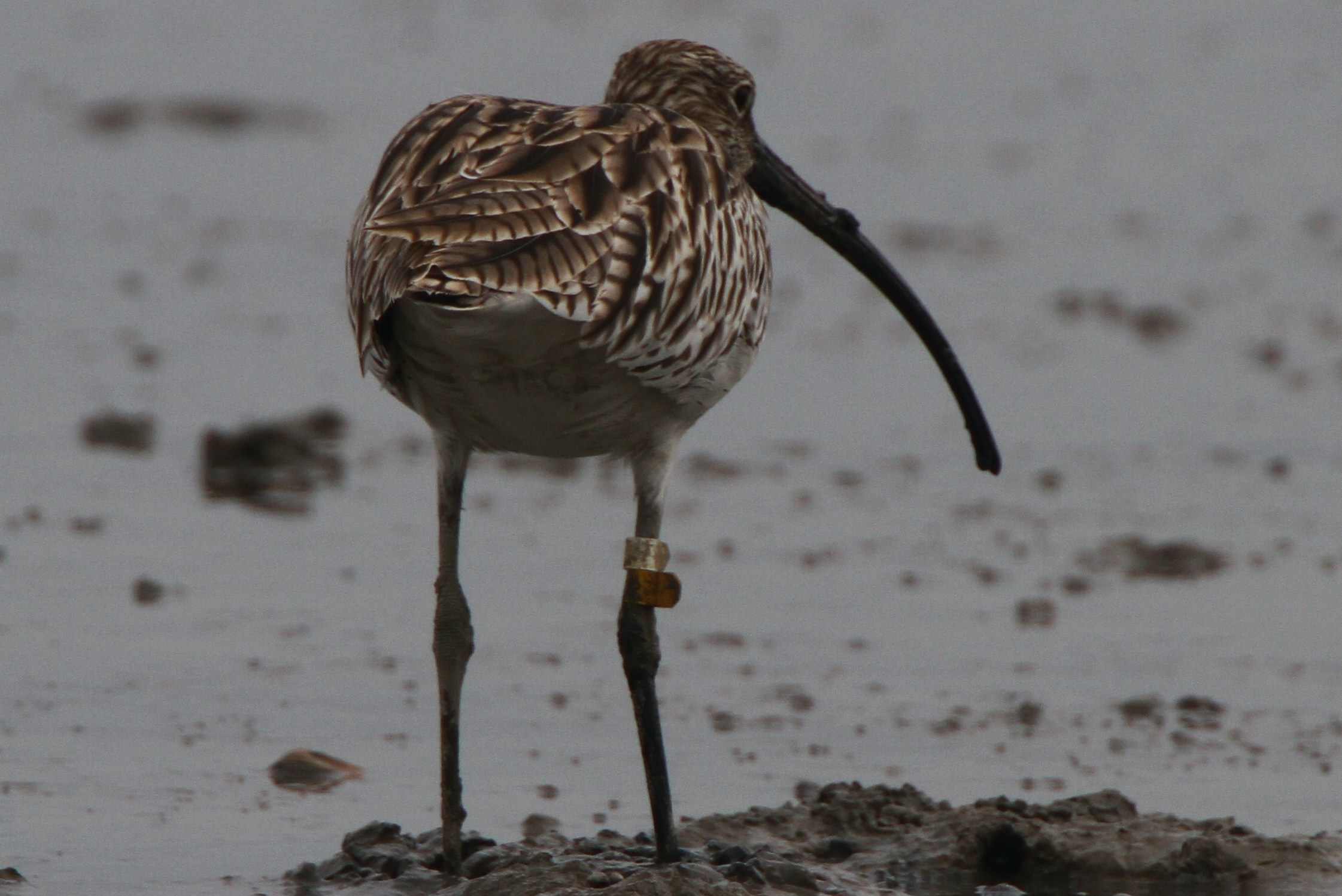 Saw at least three ringed shorebirds at Mai Po 7 Aug 2010--Eurasian Curlew, Common Redshank and Common Greenshank.  The yellow bands mean they were ringed in HK, right?