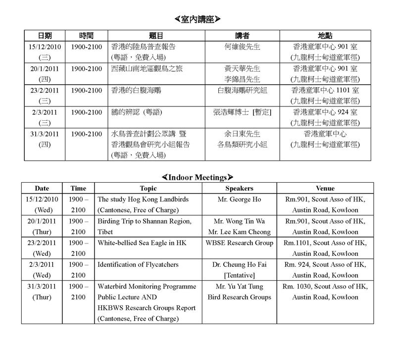 [Indoor] 室內講座 Indoor meeting - 10年12月至11年3月 Dec 10 to Mar 11