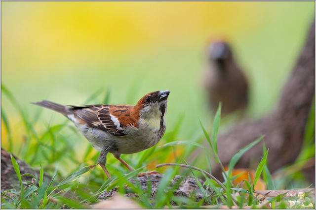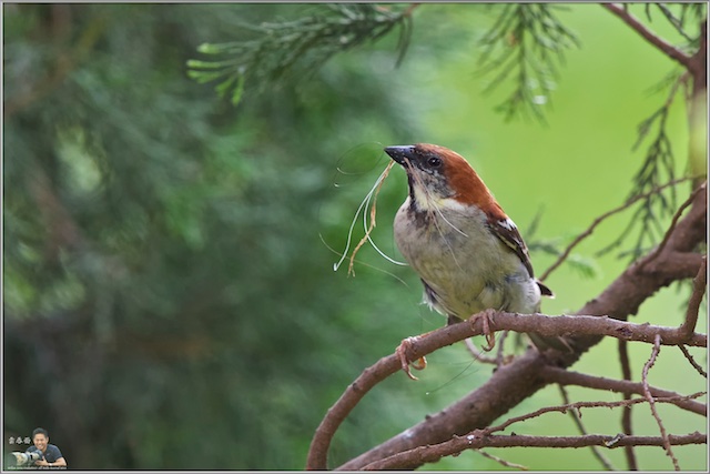Russet Sparrow - Ex-Captive? With Nesting Materials ..