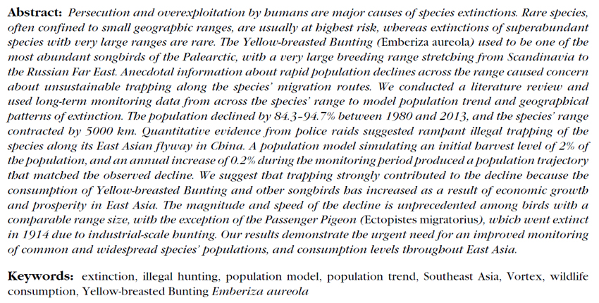 Global population collapse in migratory bird & illegal trapping in China