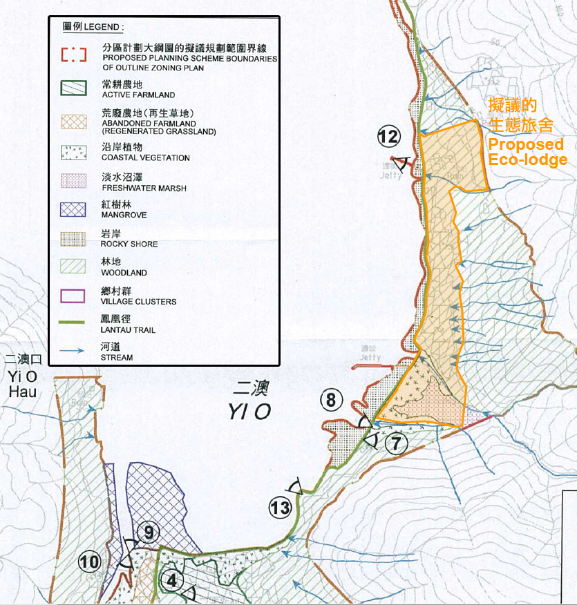 - 我們反對申述人〔編號1〕的建議,將「綠化地帶」改劃為「其他指定用途」註明「生態旅舍」及於二澳興建有70間房間的生態旅舍。有關土地有林地、沿岸植物、淡水沼澤及天然河溪。旅舍發展會破壞天然生境及影響受保護的盧氏小樹蛙及其棲地。