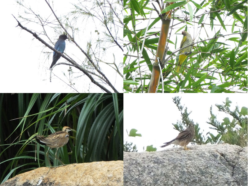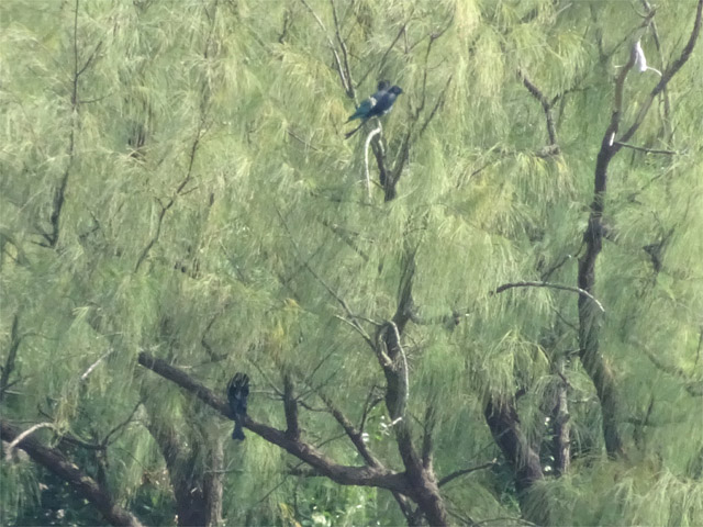 A Dollarbird and at least seven Black-naped Orioles were in the tall trees at the Lower School.