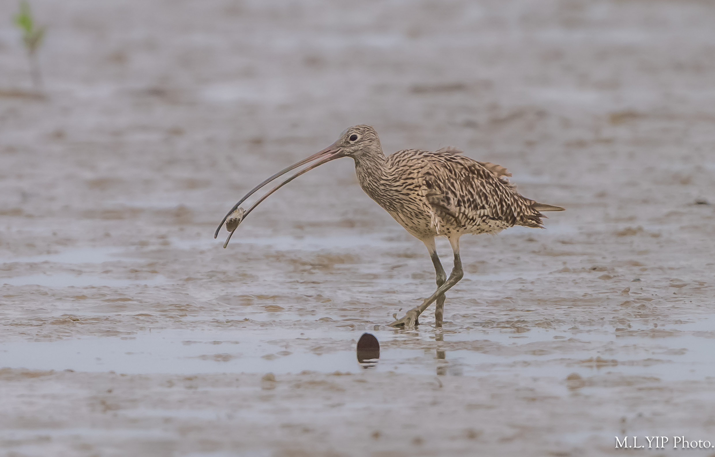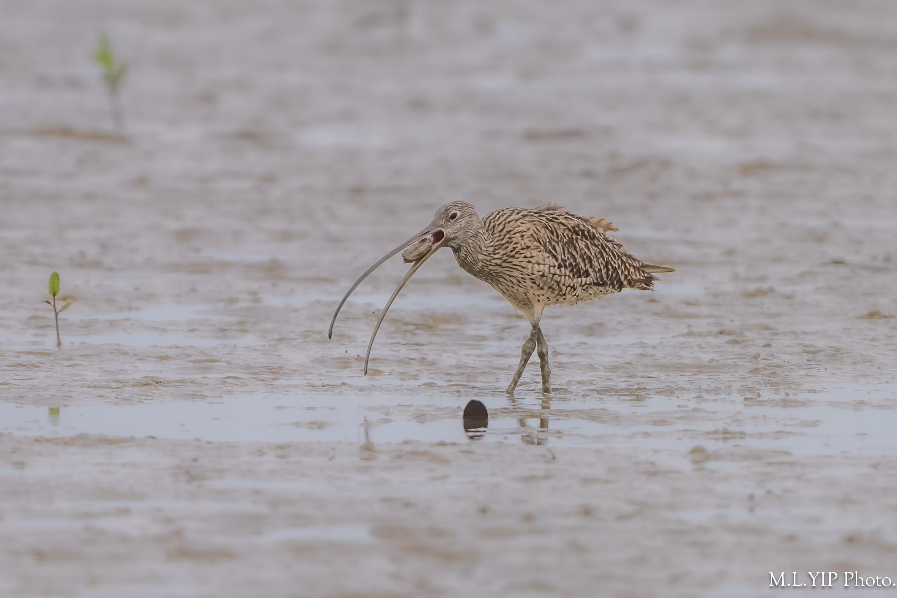 大杓鷸擁有長長嘴巴,可以掘到深處來找獵物,可是進食的時候,就要花點功夫.