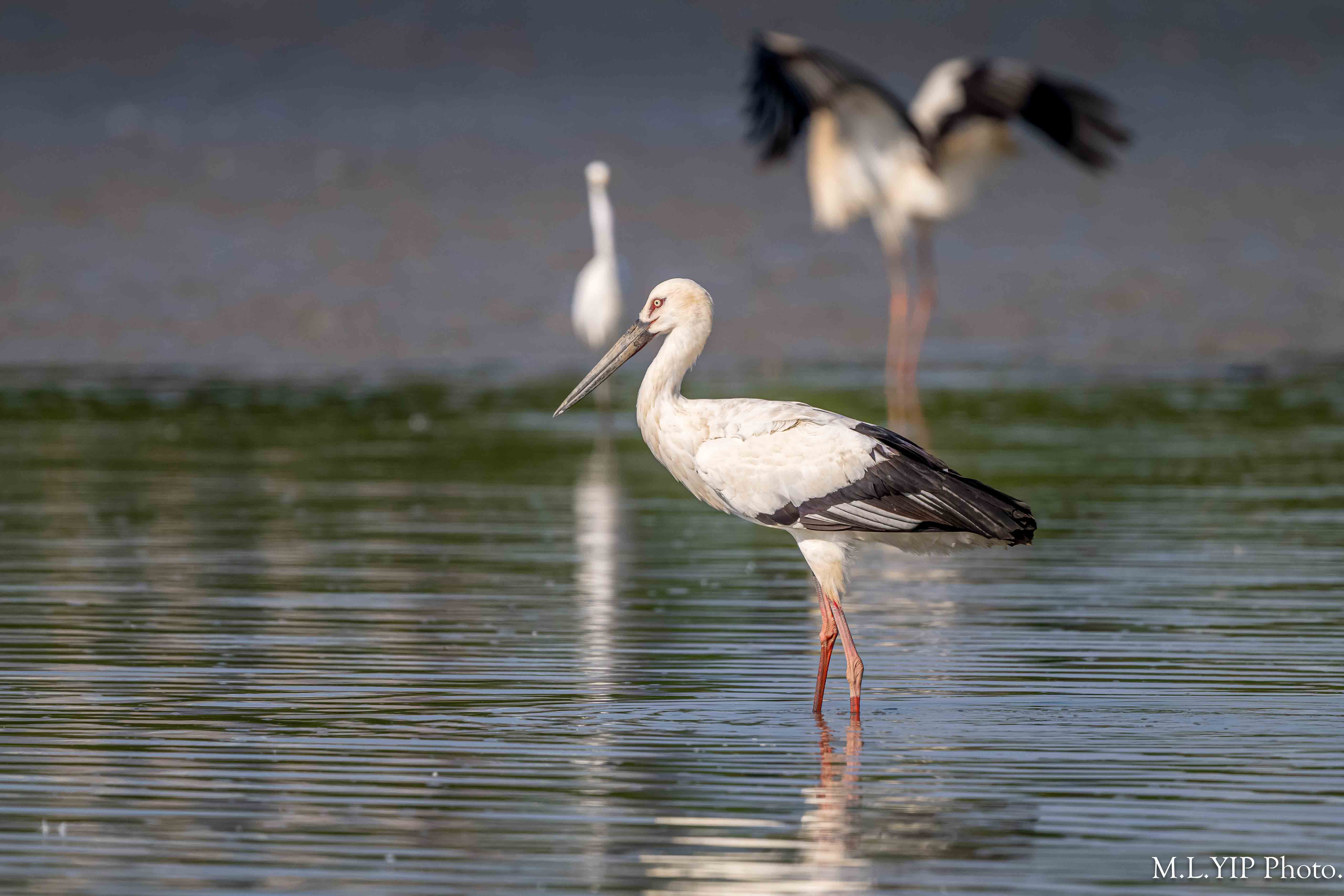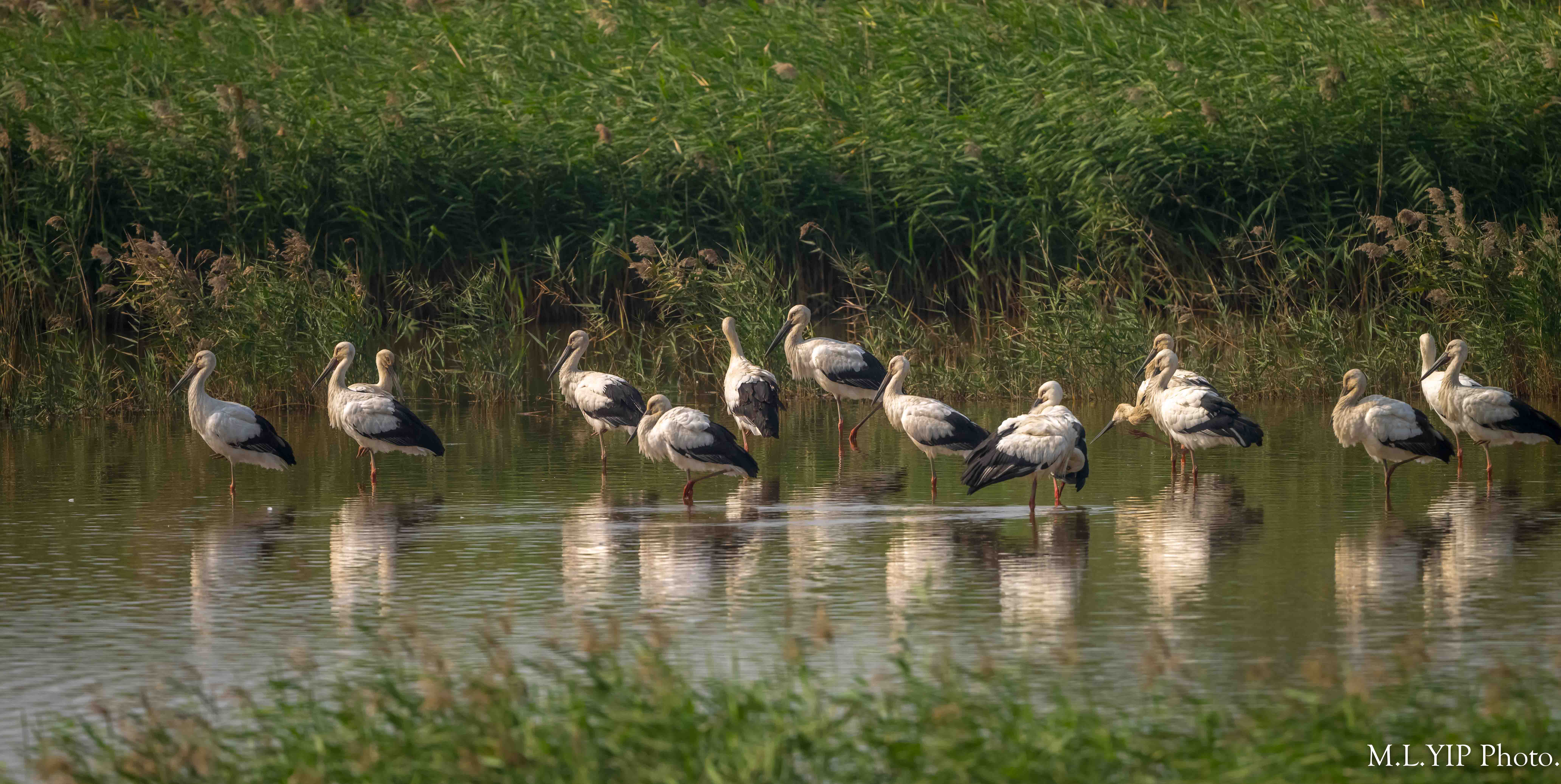 那天拍攝的時候,身旁的前輩話,數到有二十隻東方白鸛,可是我的鏡頭不能一鏡盡攝.