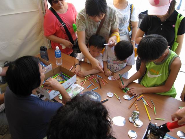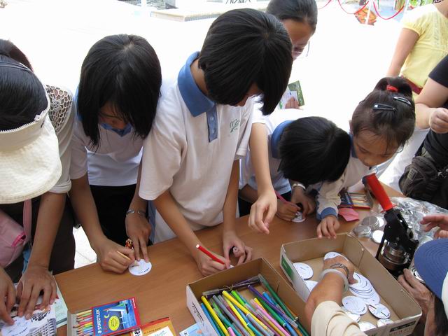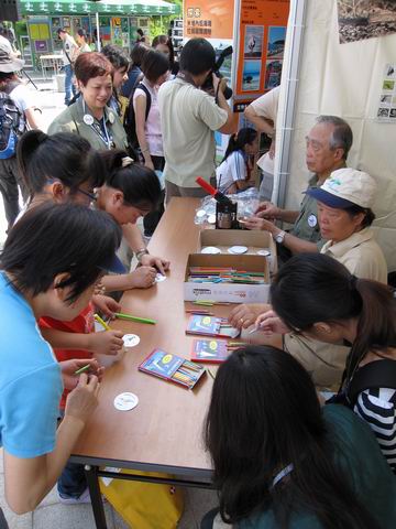 紅耳鵯俱樂部組員協助主持永遠受大小朋友歡迎的"自畫襟章"攤位