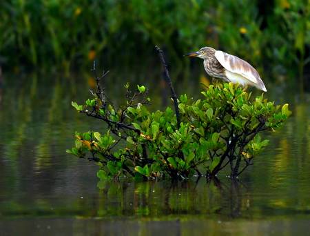 随着红树林的的保护的进行,里面的鸟类也不断的多了起来。而这个地区同时处于红河的出海口处,以及红树林里丰富的食物补充,所以这里成为了众多迁徙的候鸟的歇脚之地,在候鸟迁徙的季节那里会有很多很多的鸟。