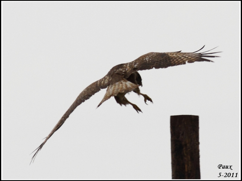 My comment about the Buzzard wasn't offering a unified identification.Trying to make a logical progression from what was visible in the flight photo to the perched bird left me unable to come to a definitive conclusion.I was really trying to guess at how Paul ended up with a Steppe Eagle and an upperwing pattern as shown.I was convinced the first flight photo ruled out every possible Steppe Eagle plumage! At a stretch perhaps a dark variant adult Steppe E might remotely fit but even then I think it has too many pale markings on the coverts for this. As John has mentioned the shape of the bird in flight seems all wrong for a large Aquila Eagle.