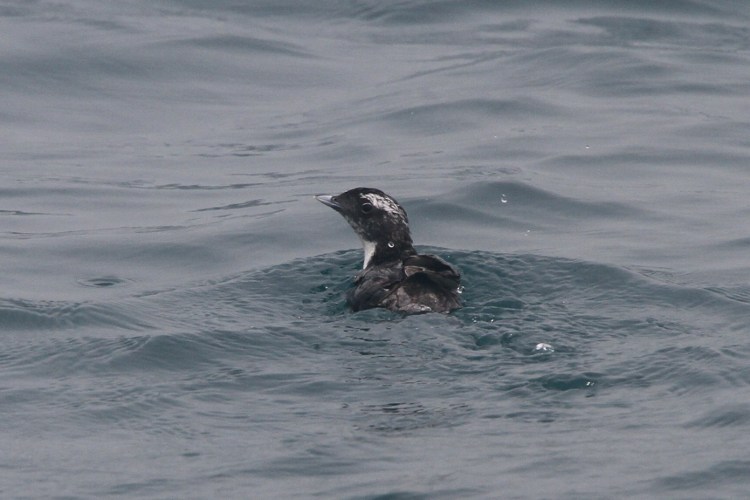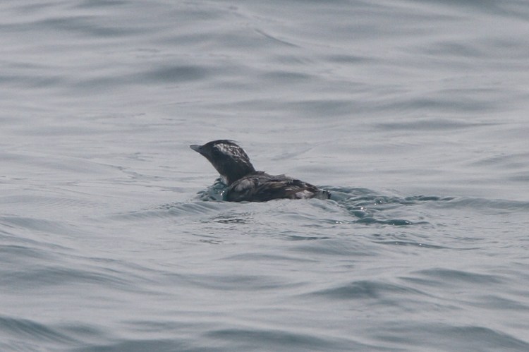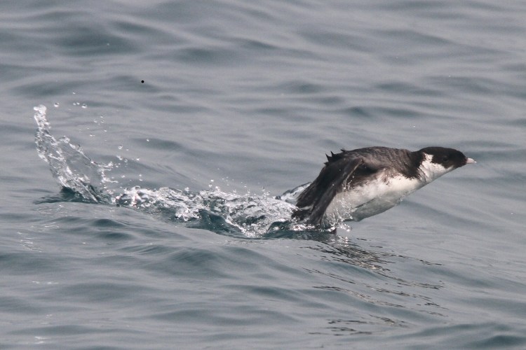 Here's the flying bird from Saturday. It looks more like an Ancient Murrelet to me. And since the two we saw later stuck together, and the other one flew were badly, I don't think this bird was either of those, so probably a third one.