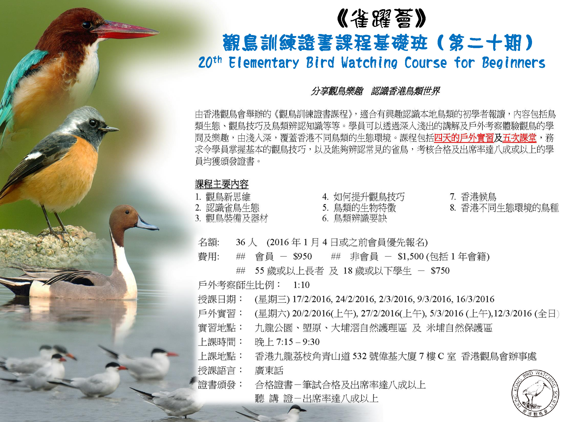 (滿Full)《雀躍薈》觀鳥訓練證書課程基礎班(第二十期)