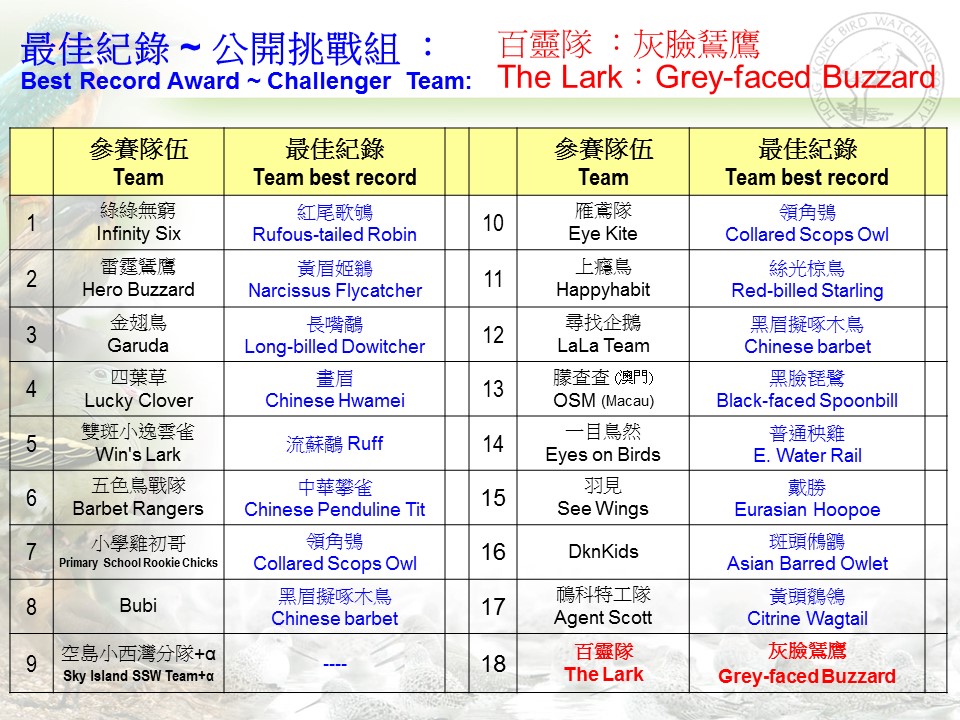 Hong Kong Bird Watching Day Cum Bird Race Fundraising Event