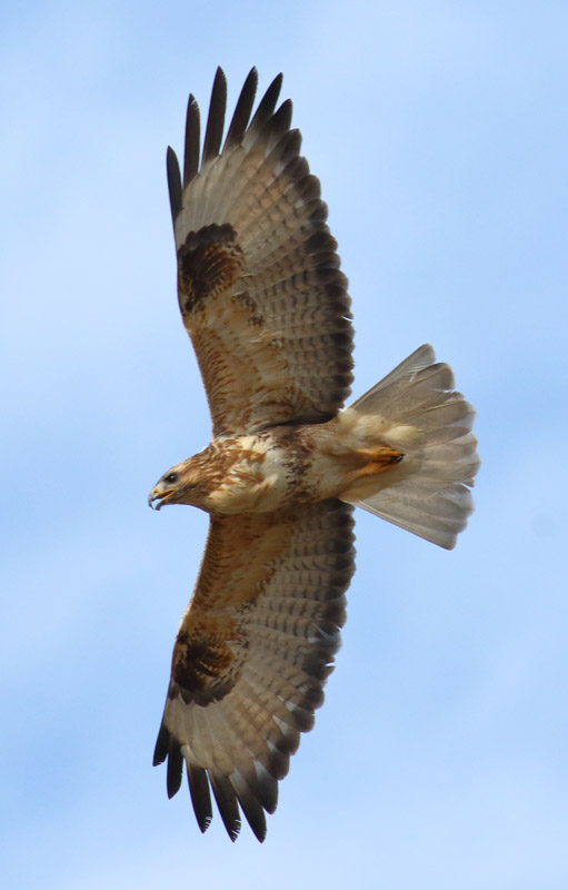 To me, the wing shape, the unbarred tail, and the buff-rufous tinted underwing covert favour Long-legged, but the white thigh and brown band across belly do not fit. However, it appears to fit well the description of Himalayan Buzzard by Robson (Birds of South-east Asia). Comments on its id are much welcome.