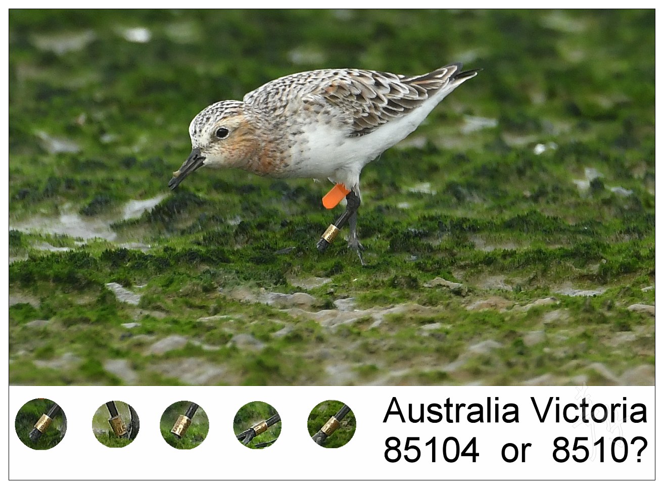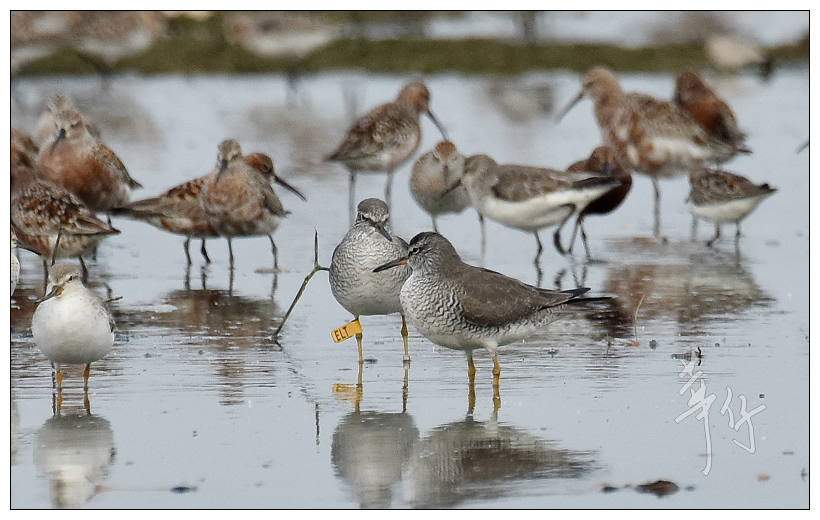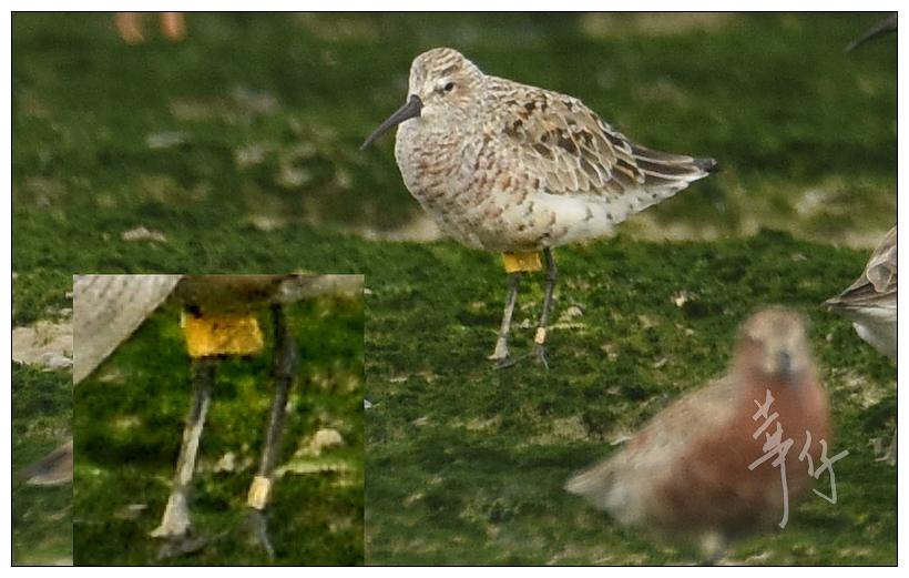 原帖由 lkatherine 於 2/05/2018 22:10 發表 華仔拍到的這隻紅腹濱鷸是Global Flyway Network在西北澳環誌的, 以4種不同顏色的腳環加上把黃色足旗放在不同位置,可組合出2千多個組合, 以標籤不同個體。例如這次拍到的這隻是黃旗在左腳兩個色環之間, 是5號位置, ...