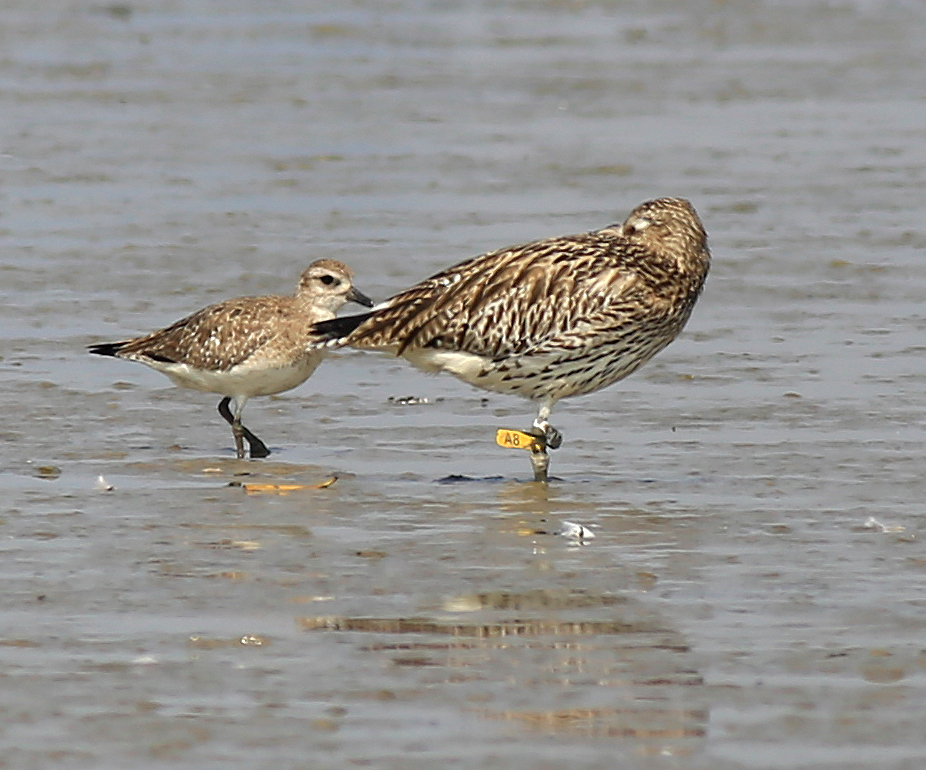 Curlew Sandpiper CC is a very interesting bird. We trapped and flagged this bird at Mai Po on 6th May 2016, only four days before this sighting. But the bird was already carrying a metal ring, having been previously trapped in Malaysia. From the number on the ring we have been able to trace this as a bird that was ringed at Kapar Power Station, Kuala Lumpur, on 23rd March 2016, 44 days before it was recaptured at Mai Po. This is our first ever recovery of a bird ringed in Malaysia. We added the flag in the hope that we will get more information about the migration of this bird, which can be shared not only in Hong Kong but also with the Malaysian ringing scheme.