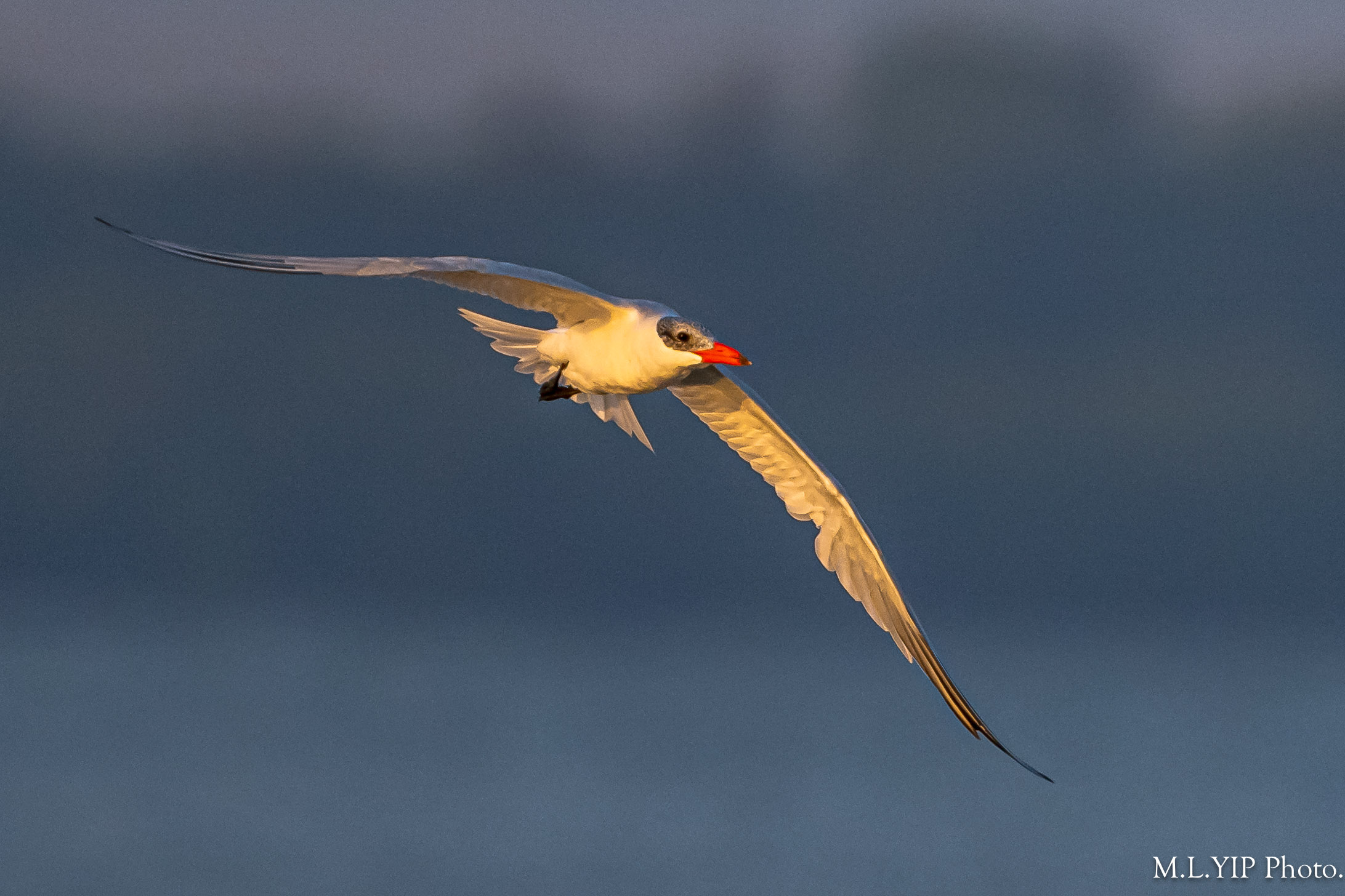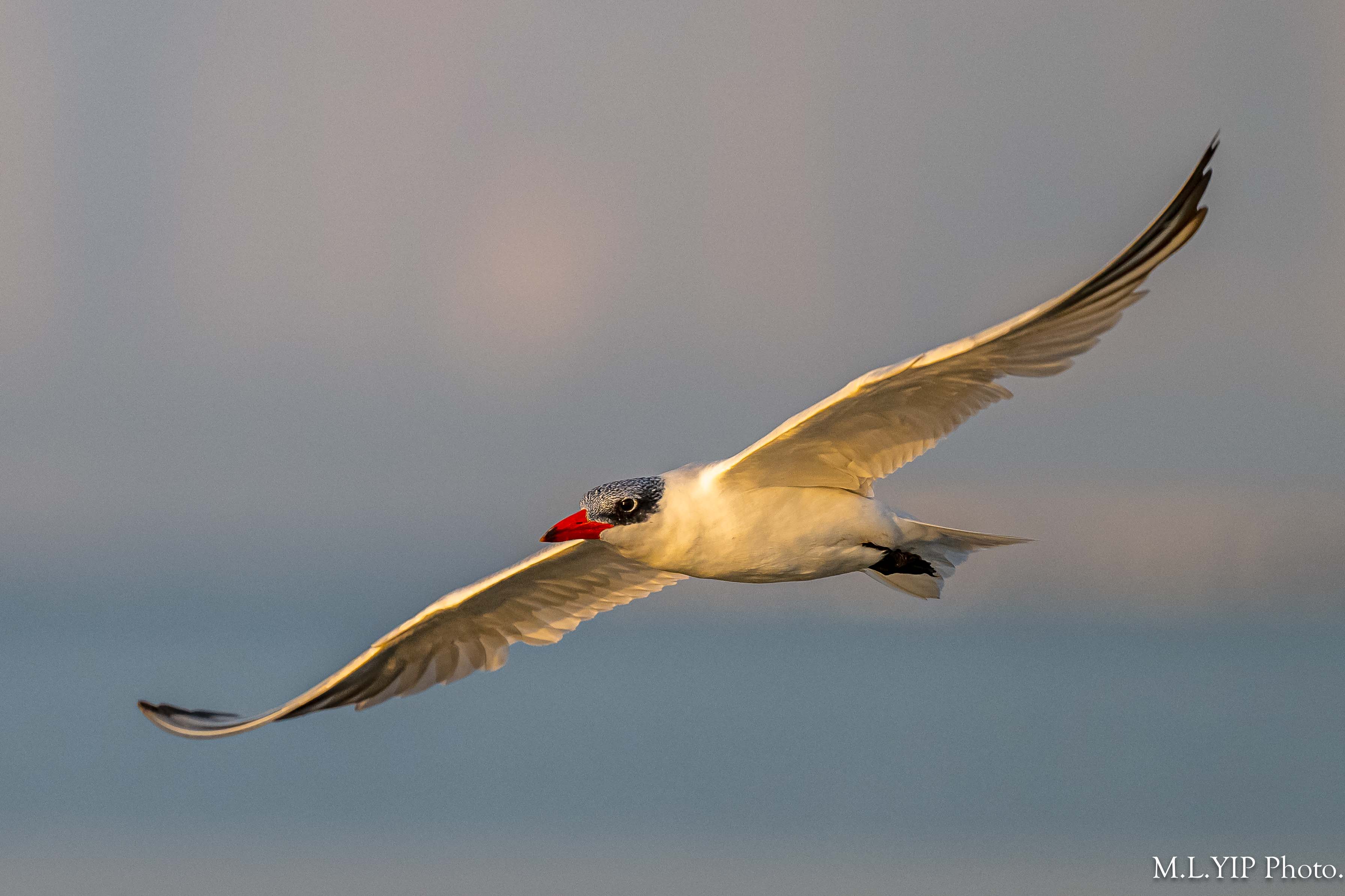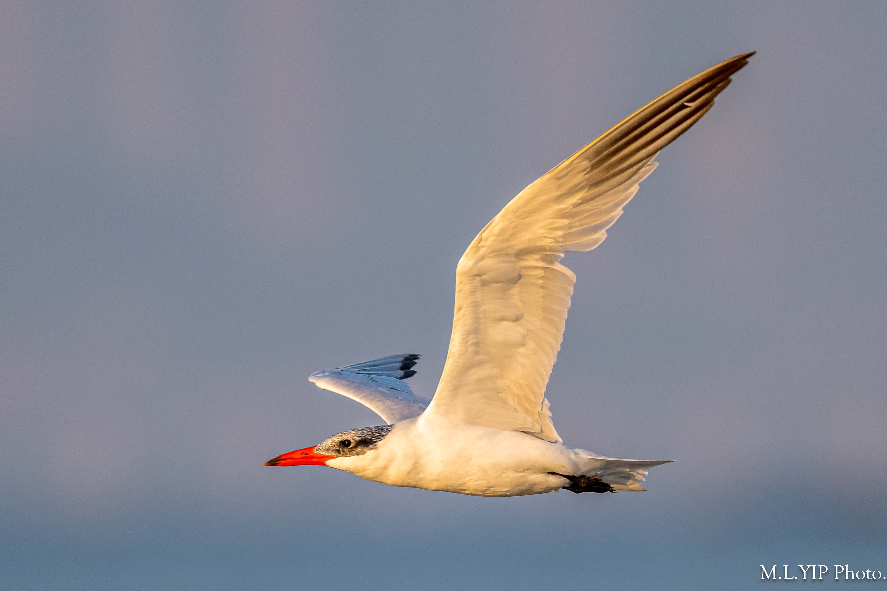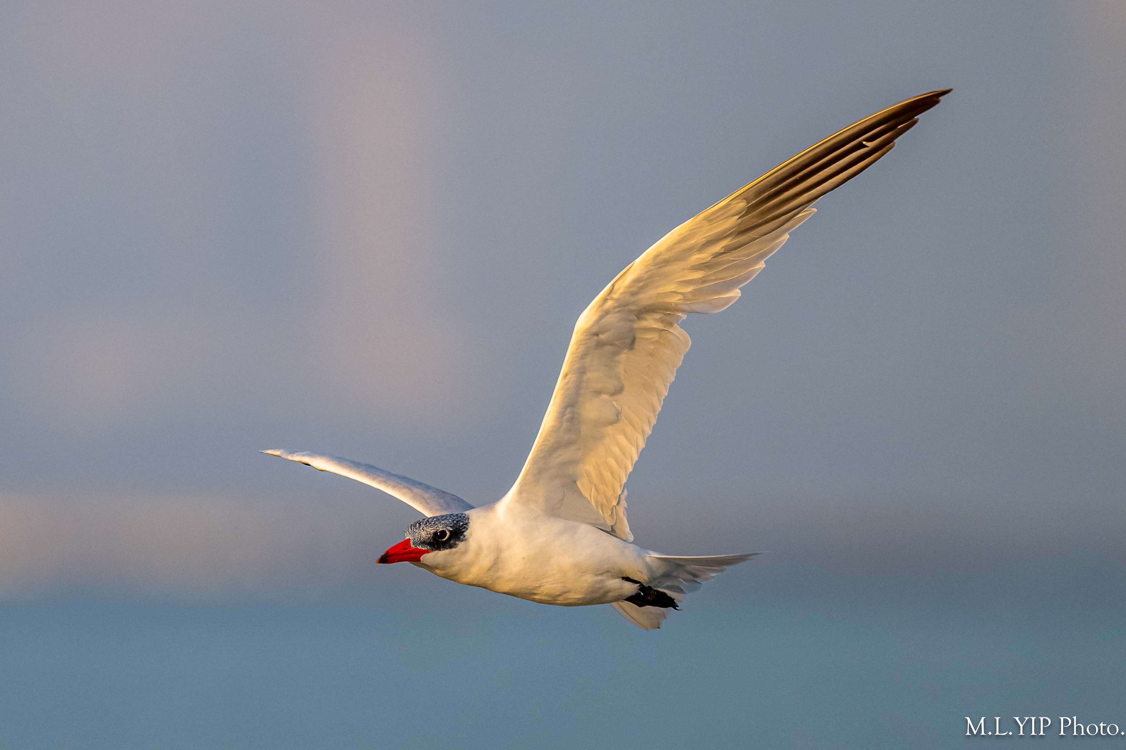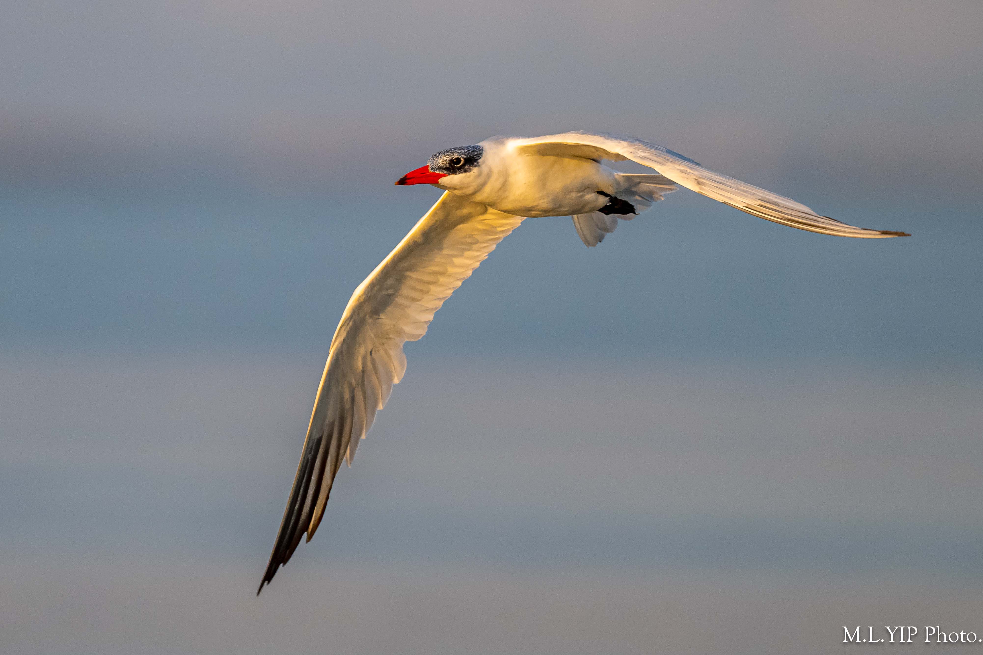 晨光下的紅嘴巨鷗.