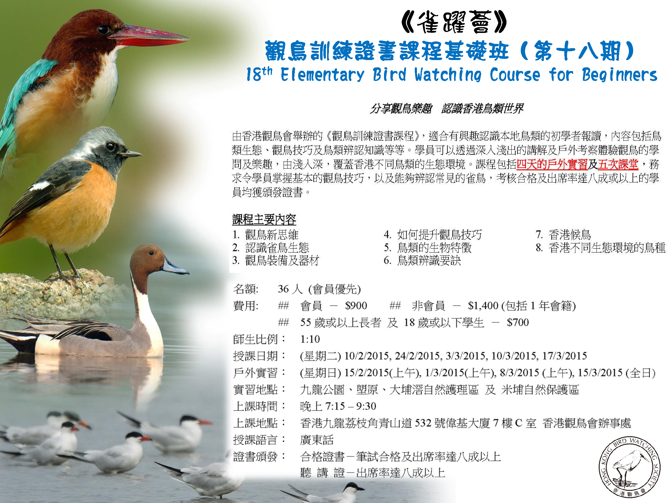《雀躍薈》觀鳥訓練證書課程基礎班(第十八期) 18th Elementary Bird Watching Course for Beginners