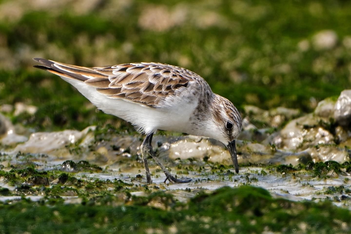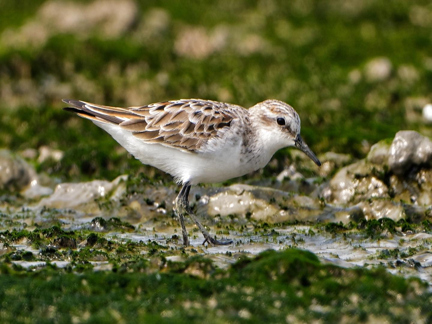 I think it looks good for a Little, dainty and not as "hard shouldered" as Red-necked, legs are thinner and tibia looks longer then Red-necked, neck also seem thinner and not as "thick necked" as in Red-necked. The few darker centered scapulars near the shoulder also is a good feature, although this is not the more "typical" brightly coloured Little Stints more advance into breeding plumage.