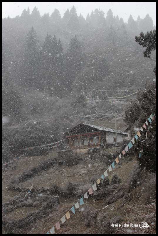 It was snowing at the temple!