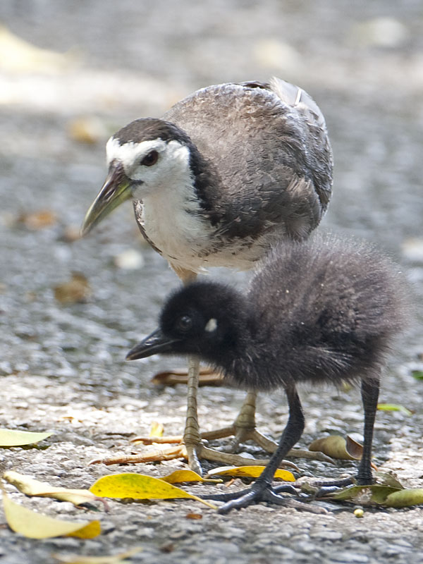 White -breasted Waterhen - adult & chick