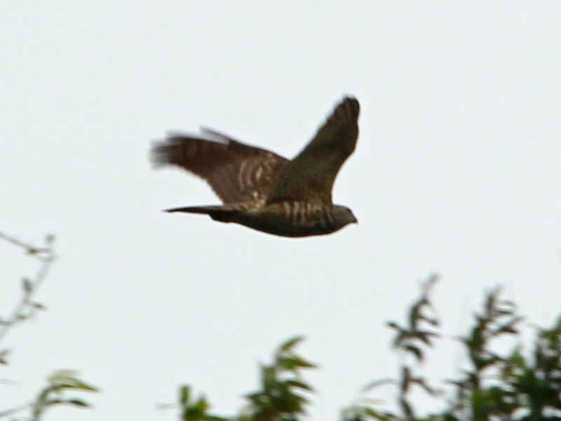 It's clearly a relatively large, bulky raptor, with thick, strong legs. This rules out the smaller Accipiters (Besra, Japanese, Chinese, Eurasian). The legs are relatively long, however - longer than on pictures of Grey-faced. Also with long 'trousers'.