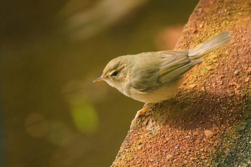尾部略分叉,飛羽略橄欖綠色,據此特徵可能為棕眉柳鶯。